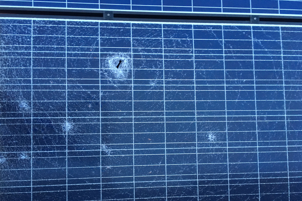 Egal ob Maderbisse in Kablen, Montagefehler oder Einschläge durch Hagelkörner – Schäden an Ihrer Photovoltaikanlage sind natürlich ärgerlich. Damit Sie nicht auch noch auf den Kosten sitzen bleiben, sehen wir uns alle Schäden genau an. Daraufhin erstellen wir ein Gutachten, mit dem Sie ein aussagekräftiges Dokument in den Händen halten. Hiermit können Sie sich dann je nach Schadensfall an Versicherungen, Behörden oder Montagefirmen wenden. In unserer Galerie sehen Sie eine Auswahl von Schäden, die wir bereits begutachtet haben.